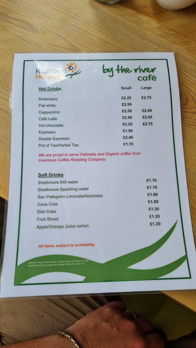 Welcome to Highland Hospice - By The River Café, a hidden gem nestled in Inverness. This café effortlessly combines a warm atmosphere with a menu that offers delightful homemade treats. Start your visit with a selection from their homebaking menu featuring homemade scones, empire biscuits, and scrumptious loaf slices. The aroma of freshly brewed hot drinks like cappuccinos and flat whites fills the air, making each sip a pleasure. For a hearty option, don't miss out on their bacon and egg rolls—a satisfying choice praised by many patrons.
